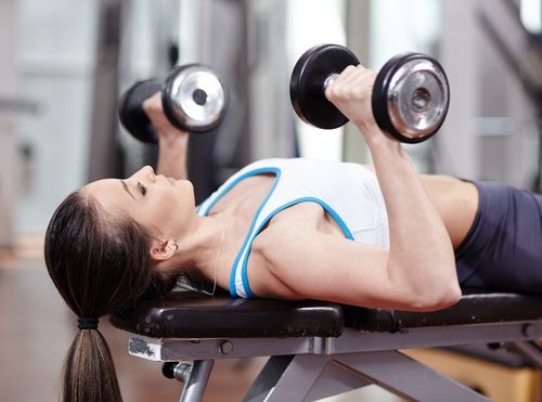 Chest press. Lie flat on your back with a dumbbell in each hand. Extend your arms up and hold for 10 seconds. This simple exercise works the pectoral muscles. Over time, the breasts will begin to firm and reshape.