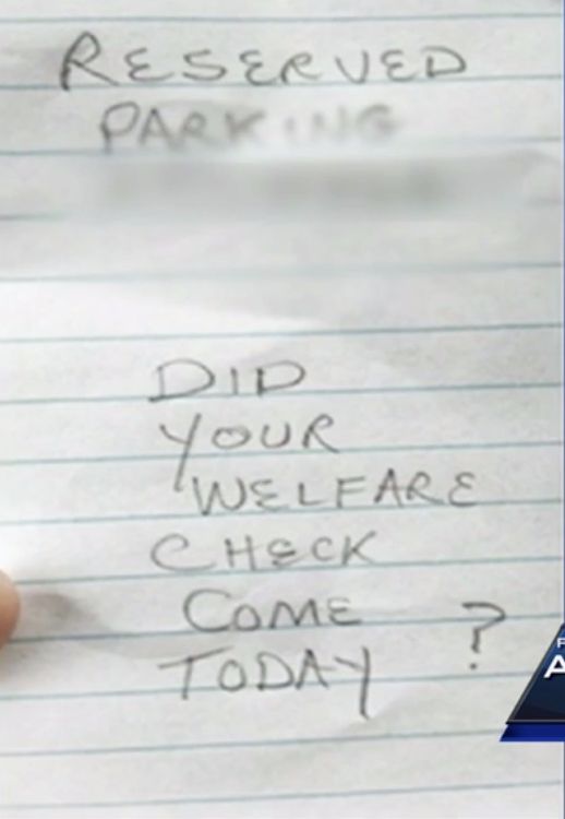 The fact that Waller and her sons appeared able-bodied must’ve set an unseen bystander off because when Waller came out of the store, she found a rude note on her windshield. It said, "Reserved parking @*#hole Did your welfare check come today?" according to WTAE.