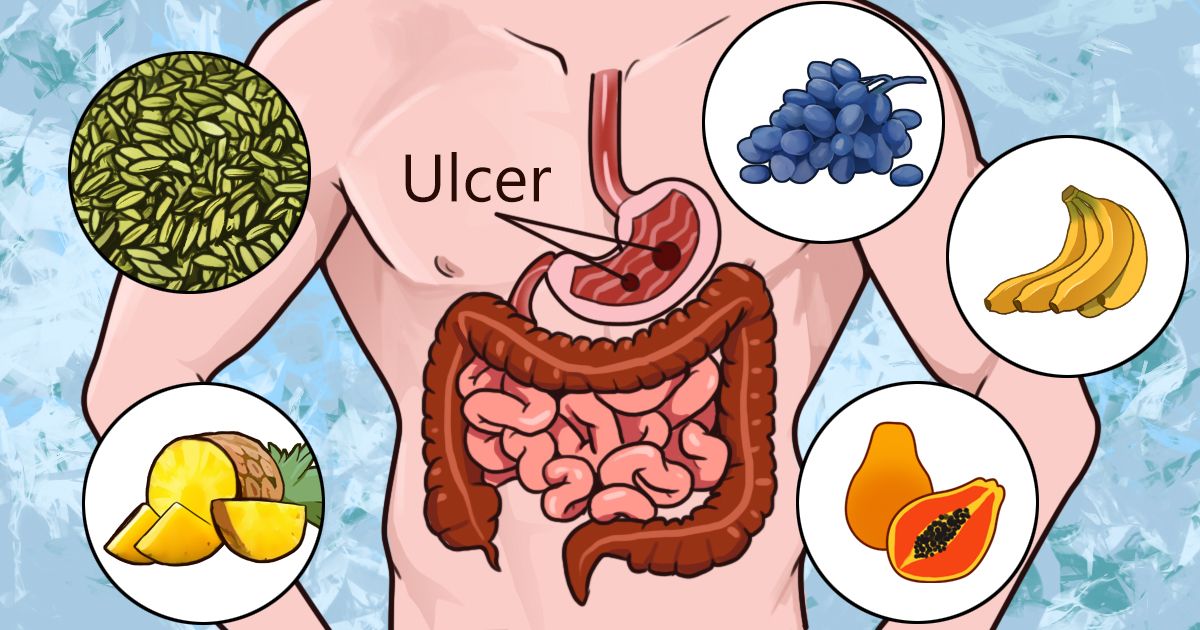 8. Cabbage. Once you have an ulcer, howstuffworks recommends drinking 1 quart of cabbage juice a day for five days. The cabbage juice helps speed the healing process. Eating raw cabbage will also work if you can't stand the idea of drinking that much juice.