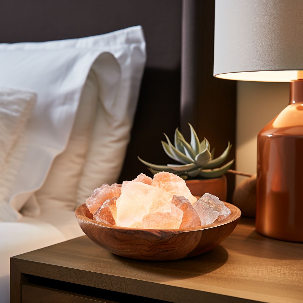 In conclusion, a bowl of Himalayan salt by your bed may be an aesthetically pleasing addition to your bedroom that could potentially improve air quality, mood, sleep, and energy levels according to anecdotal and preliminary evidence. However, more robust scientific research is needed to validate these effects. As with any alternative health approach, it's recommended to consult a healthcare professional to discuss its potential impact on your specific health needs.